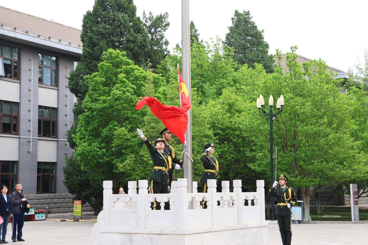 国旗班队员迈着铿锵有力的步伐护送五星红旗入场。在雄壮的《义勇军进行曲》中,鲜艳的国旗冉冉升起,全体师生肃立注目,庄严的仪式激荡着每个人的爱国情怀。
