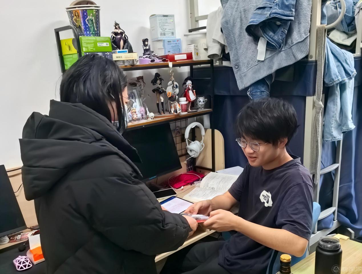 在走访过程中,学院老师们还为每位备考学子送上了一份特别的“考研加油套装”。套装内含考试必备文具,每一件套装都寄托着学院师生对考研学子的深深祝福与殷切期盼。这份突如其来的惊喜让同学们倍感温暖与鼓舞,他们纷纷表示,这份贴心的礼物不仅是一份物质上的支持,更是精神上的莫大激励,承载着学院满满的关爱与“旗开得胜”的美好祝愿。