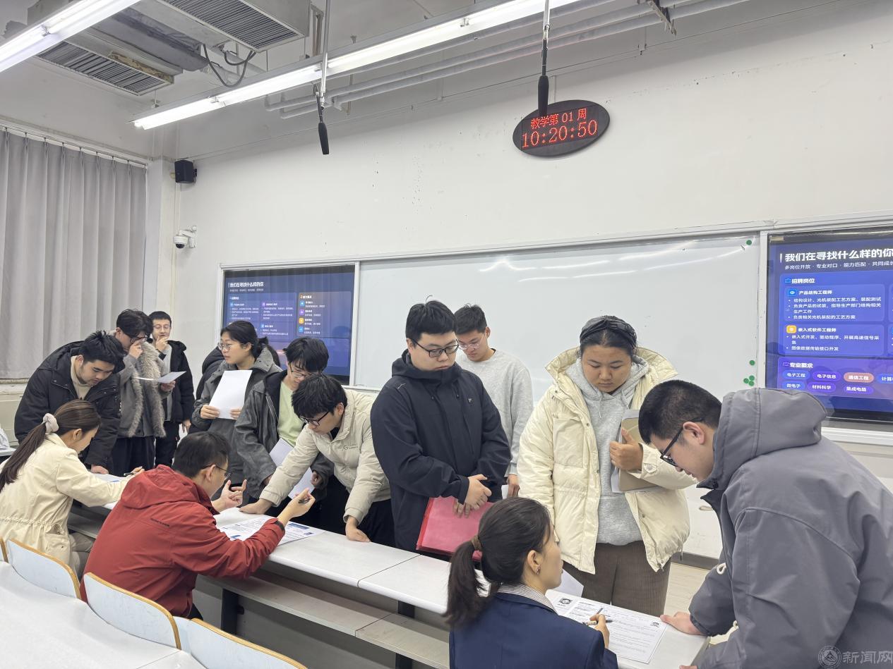 宣讲结束后,公司三位负责人随即开展简历筛选和初级面试,逐一与毕业生进行深入交流,了解员工专业能力与求职意向,为后续招聘工作奠定基础。现场气氛热烈,互动积极。