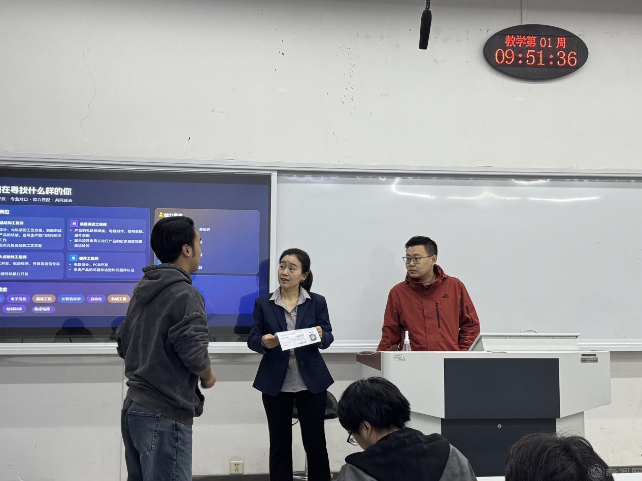 随后,产品研发部负责人张啸辉结合在场毕业生的专业背景,介绍对应的岗位需求与职业发展方向。他从专业与岗位的匹配度出发,详细讲解入职后的工作内容及专业成长路径,帮助毕业生清晰认识行业前景与个人发展空间。人力资源部负责人刘素玲则围绕公司的薪酬体系与员工保障制度进行了补充说明,全面介绍企业为员工提供的薪资待遇与福利保障,进一步增强毕业生的求职信心。