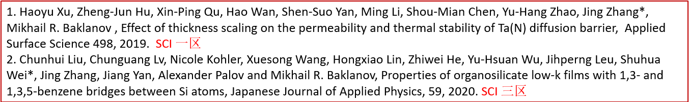 对金属阻挡层的制备与研究主要体现在制备出TaN等扩散阻挡层以及研究其热稳定性及阻挡特性。在该方向上,实验室与复旦大学进行合作研究ALD工艺制备金属阻挡层。基于该方向获得的研究成果共发表SCI期刊论文5篇、EI会议论文3篇。